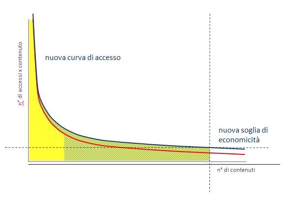 La riduzione delle barriere alla fruizione alza il numero medio di accessi per ogni contenuto (curva di accesso).